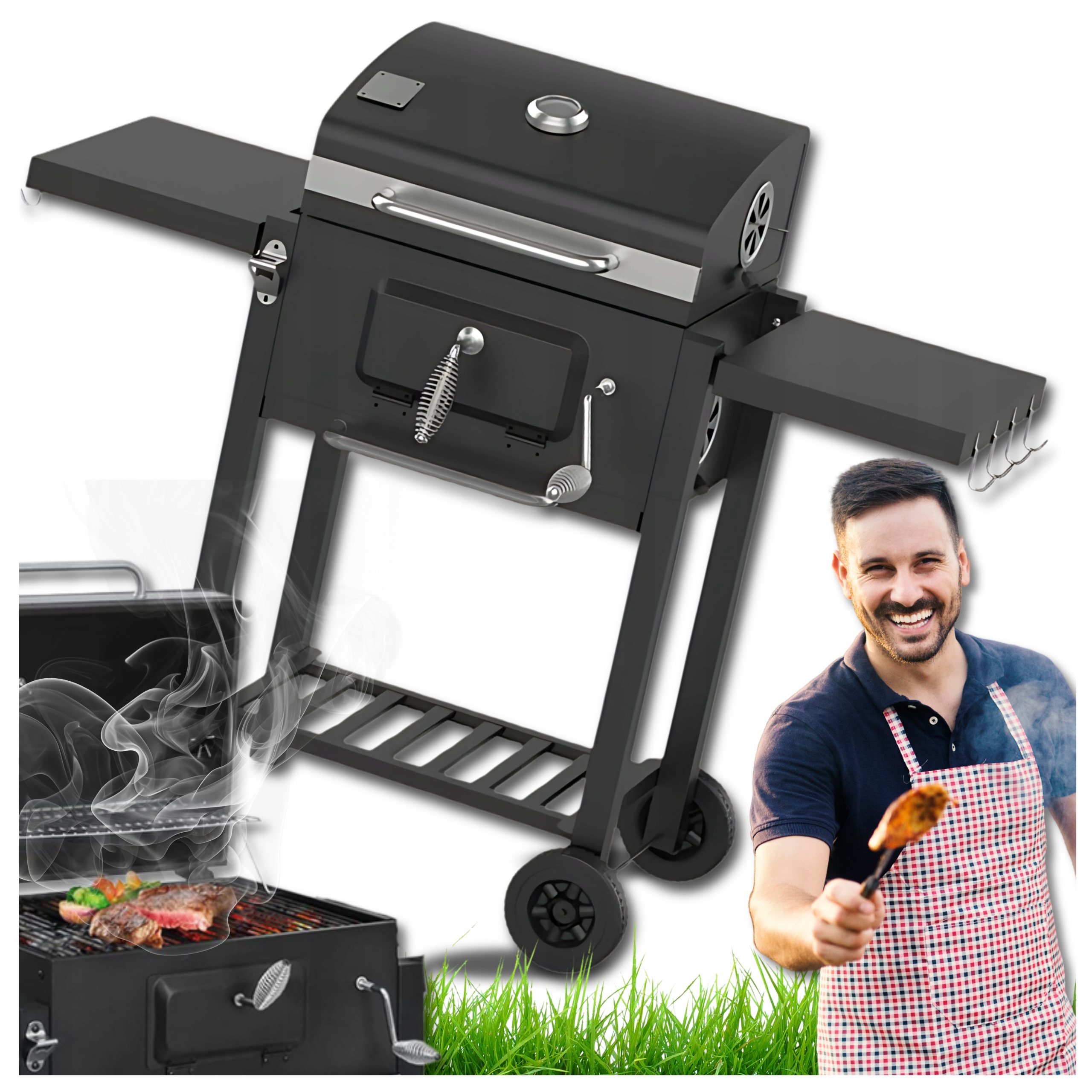 GRILL WĘGLOWY BBQ OGRODOWY POKRYWA POPIELNIK KORBA Głębokość grilla 54 cm