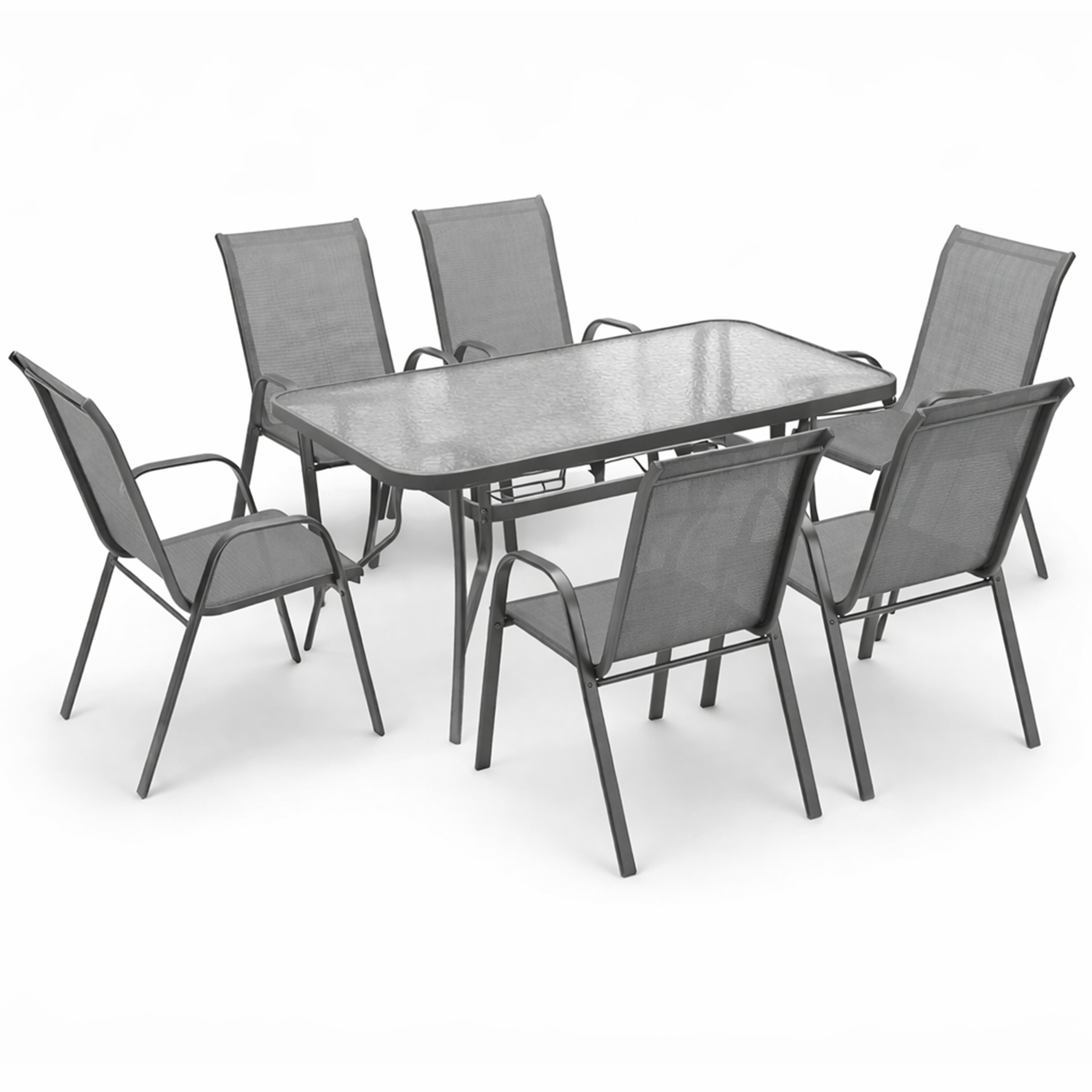 ZESTAW MEBLI OGRODOWYCH BALKON TARAS STÓŁ 120x70 +6x KRZESŁA MINORKA SZARE Liczba elementów w zestawie 7